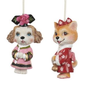 Елочное украшение “Собачки в кимоно” 10см (2 вида)
