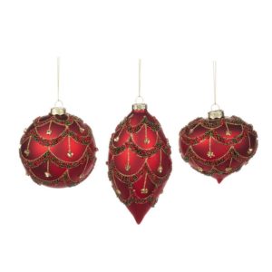 Елочное украшение “Шар/сердце/капля” красное с бисером 10см