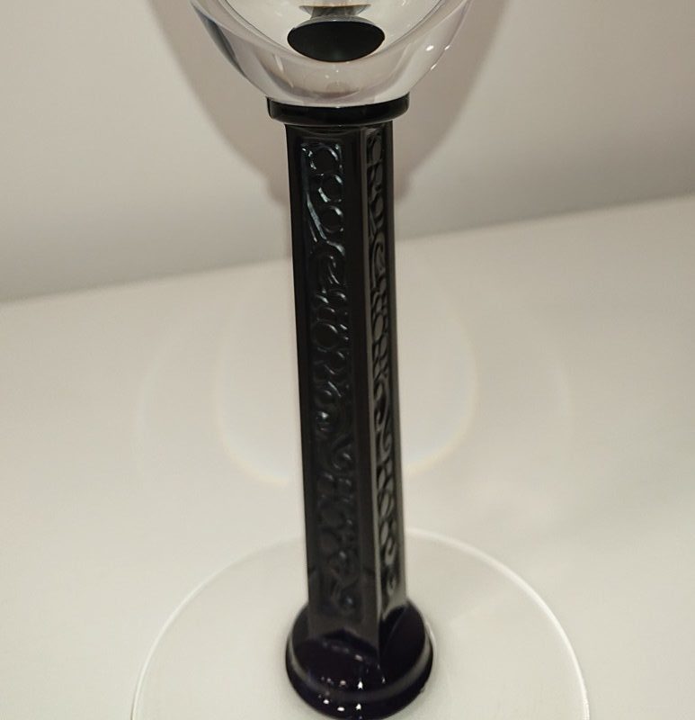 Lalique – это всегда соединение сырья с удивительной фантазией и поистине тонким мастерством. Благодаря контрасту между прозрачностью и матовой отделкой хрусталь оживает, улавливая игру света и тени, показывая все новые нюансы и глубину.Коллекция “Phalsbourg” создана в 1924 году Рене Лаликом из прозрачного стекла, а в 2009 пополнилась новым вариантом – сочетанием прозрачного и черного хрусталя. Стиль ар-деко читается в квадратной ножке бокала и модерн- в изысканном виноградном дизайне.