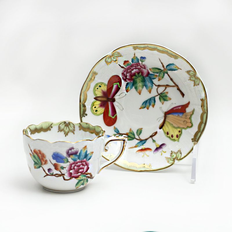 Herend – бренд, который на протяжении уже более двух столетиий на слуху у почитателей и коллекционеров элитного фарфора. Особенность изделий в том, что они представляют собой настоящие произведения искусства, поскольку производятся и расписываются вручную, причём краски — высшего качества, безопасны для здоровья и не содержат кадмий и свинец,Знаменитые изображения цветов и бабочек в стиле восточной живописи уже более полутора веков являются визитной карточкой Венгерской мануфактуры.Этот декор стал носить имя великой королевы — «Виктория», и приобрёл славу и признание во всём мире. Данный мотив предоставил мастерам мануфактуры возможность играть с росписью и создать несколько цветовых вариаций. Данная цветовая гамма, красочнее и веселее, чем мотивы первого, классического образца.