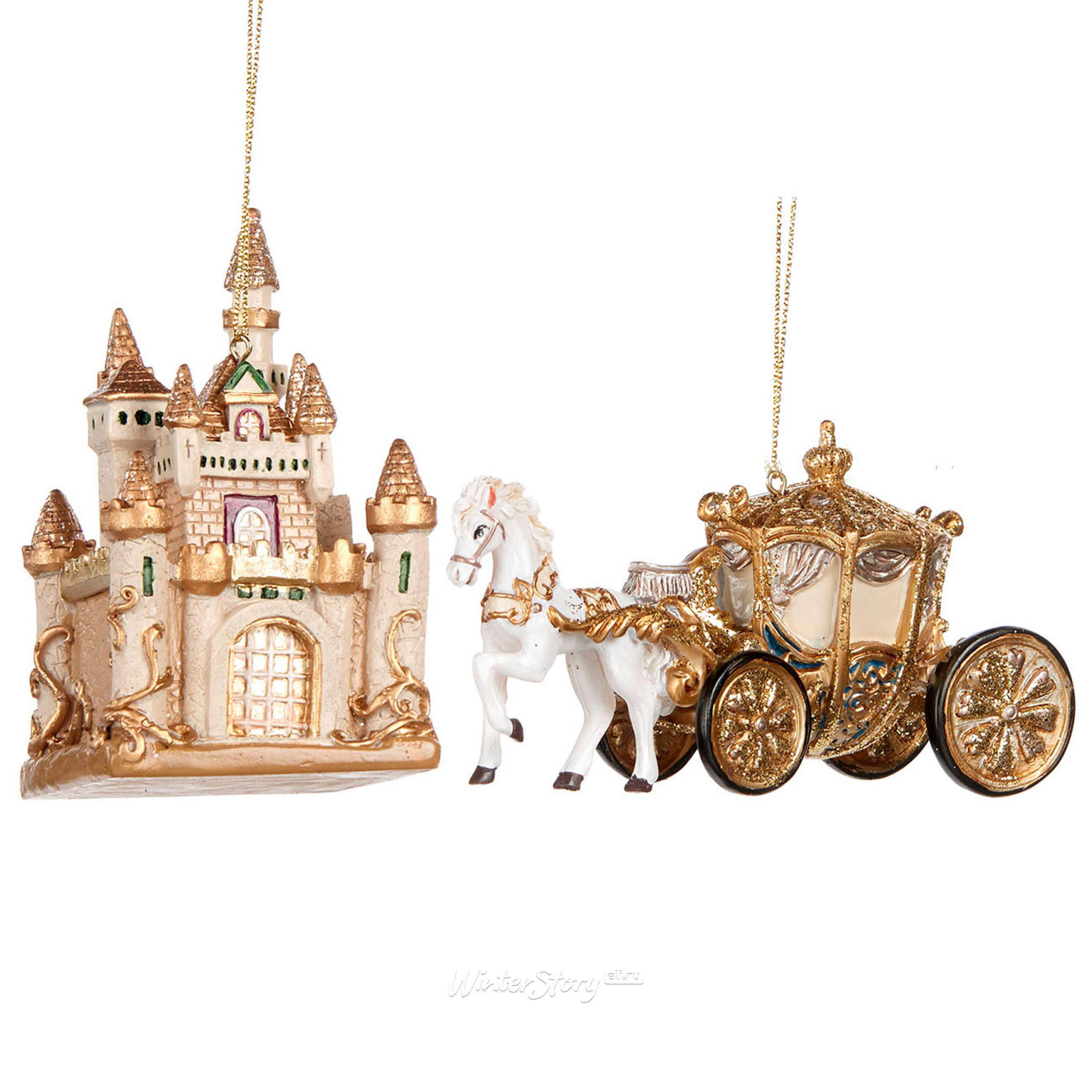 Елочное украшение “Замок/ карета” бежево-золотые 10см, (2 вида)