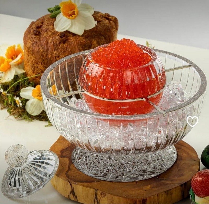 Если вы стремитесь к совершенству во всем, подбирая безупречные детали, обязательно обратите внимание на такой аксессуар как икорница. Она может использоваться не только для сервировки икры, но и,например, как блюдо для креветок с соусом в центральной части, для клубники со взбитыми сливками и т.п., а также как отдельные предметы.