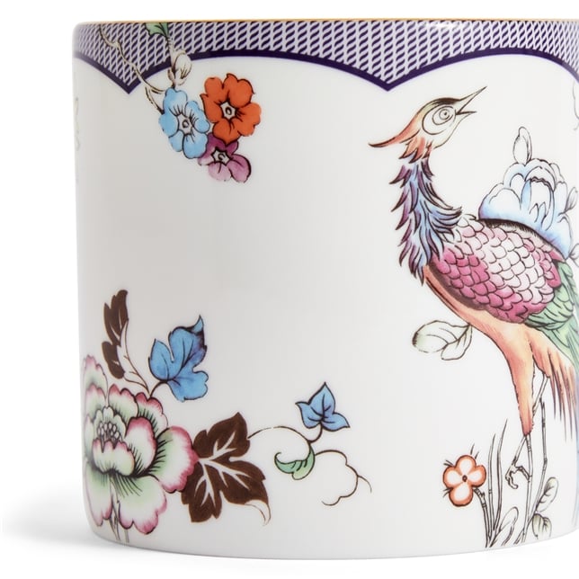 Кружка Fortune из коллекции Wonderlust от Wedgwood напоминает о романтике и яркости экзотических птиц и их оперении. На ней изображен журавль, почитаемый символ счастья, мира и долголетия, парящий среди разноцветной листвы. Яркий дизайн сочетает в себе классическую флору в стиле шинуазри с современными элементами, создавая радостное ощущение праздника. Роскошная отделка выполнена из фирменного золота.