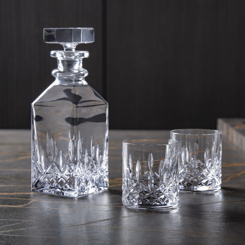 Роскошный подарок для ценителей виски,бренди, бурбона. Благодаря изысканной форие и функциональности, графин раскрывает истинный букет вашего самого желанного напитка, а чудесная огранка подчеркнет насыщенные оттенки его содержимого. Стаканы удобно держать в руке, что дополнит удовольствие.